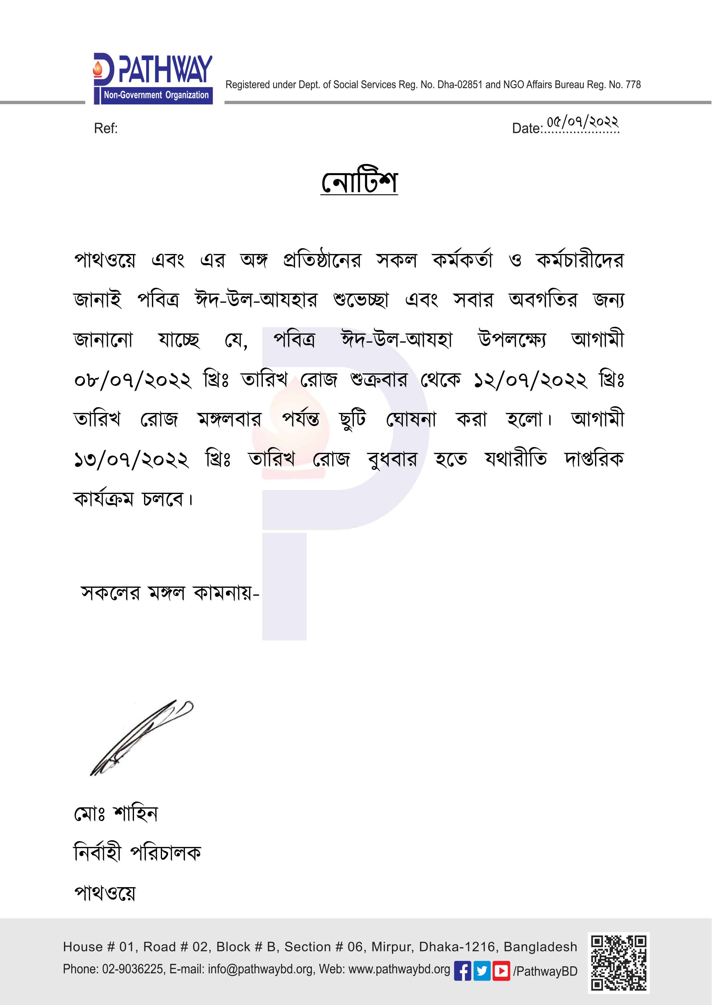 08.পবিত্র ঈদ-উল-আযহা ২০২২ উপলক্ষ্যে ছুটির নোটিশ Featured
